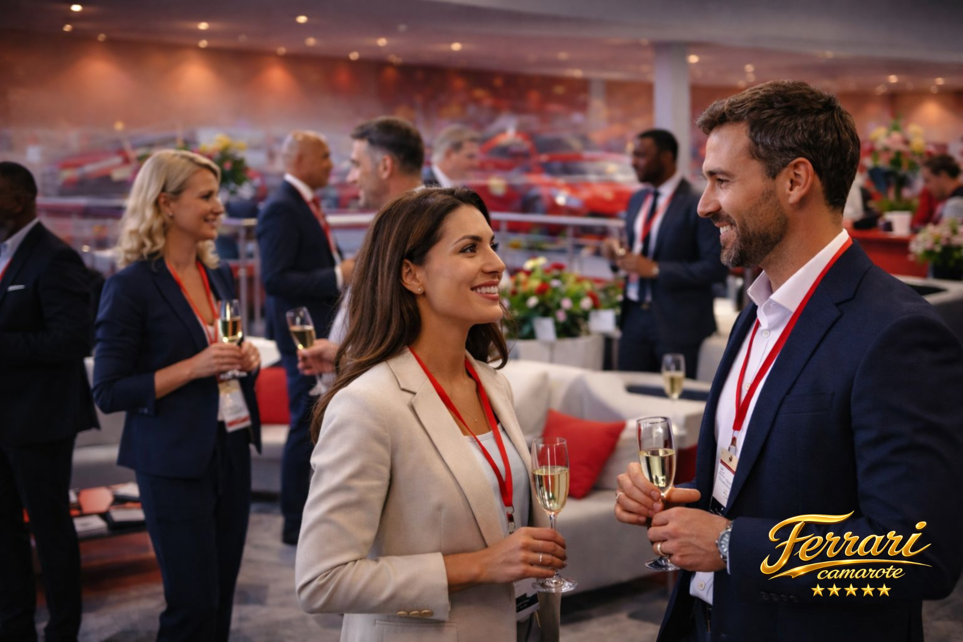O Camarote Ferrari oferece um ambiente exclusivo e sofisticado para eventos empresariais de alto padrão.